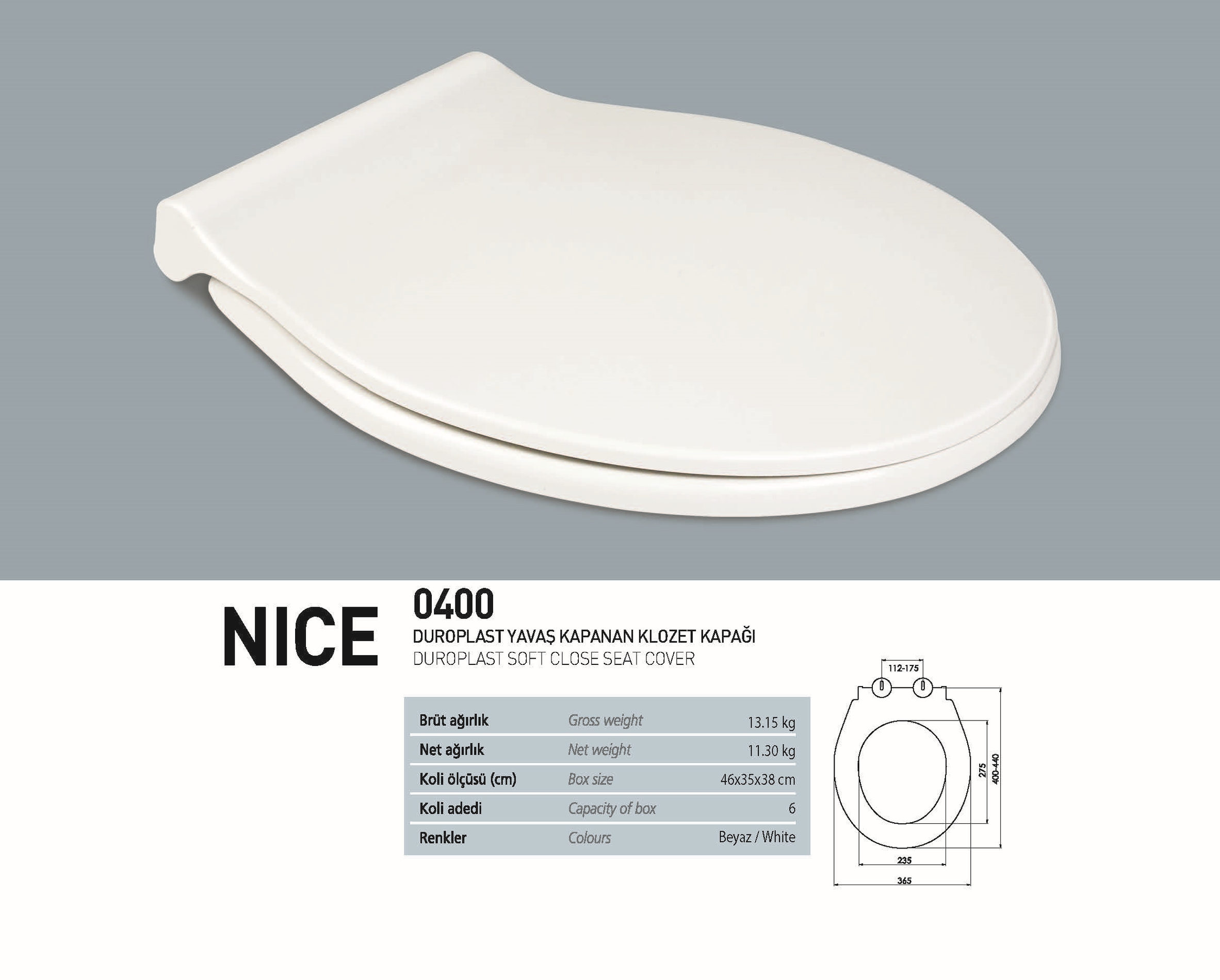 Banyonuza zarif bir dokunuş katacak, sade ve şık bir klozet kapağı ile tanışın! NKP Nice Duroplast klozet kapağı, yavaş kapanma özelliği sayesinde sesiz ve güvenli kullanım sunar.